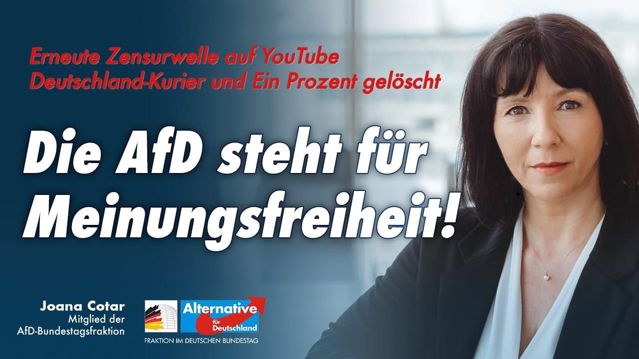 Twitter এ Joana Cotar Zur Loschung Von Deutschlandkurier Und Einprozent Auf Youtube Https T Co U1csug3zuy Https T Co Lhaaomnvwp ট ইট র